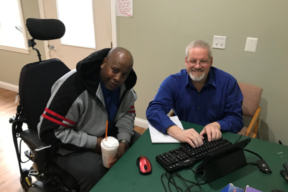 This group home is designed for individuals to remain as independent as possible for as long as possible. It is wheelchair accessible. Staff help with cooking, cleaning, and personal care, but Tim can do most things on his own.