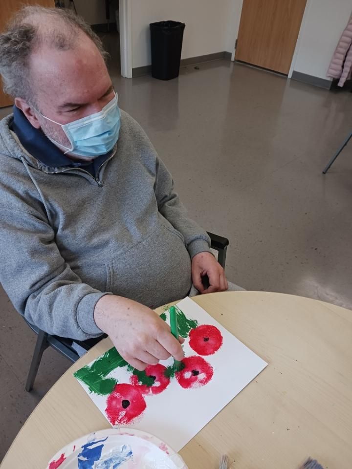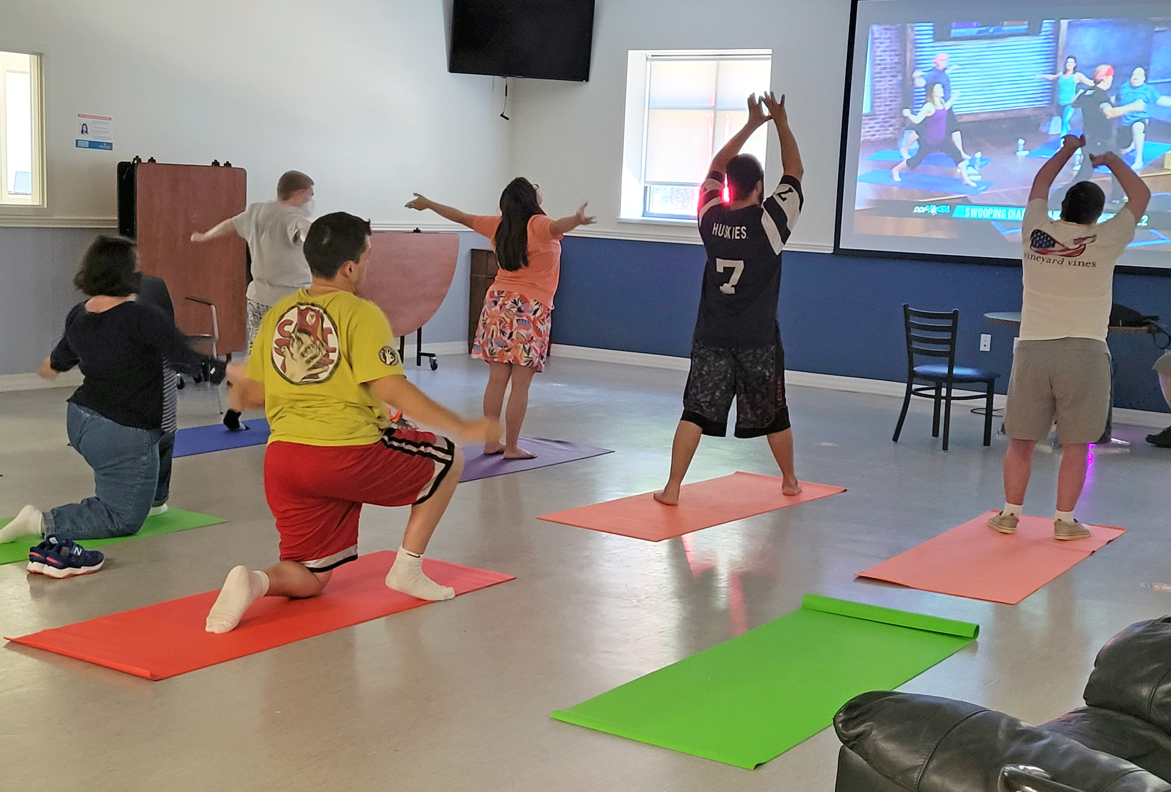 With the help of program room staff, our nurses, and the therapy team, we strive to make sure all our friends understand the importance of healthy living and wellness. A major component of healthy living is physical fitness. Our friends enjoy working on their fitness through group yoga, aerobics, going for walks, and doing one-on-one workouts in the therapy room. Through our activity schedule, we focus on nutrition by watching healthy recipe videos, and learning about the benefits of fruits and vegetables, the importance of nutrients, and how our bodies break down food for energy.